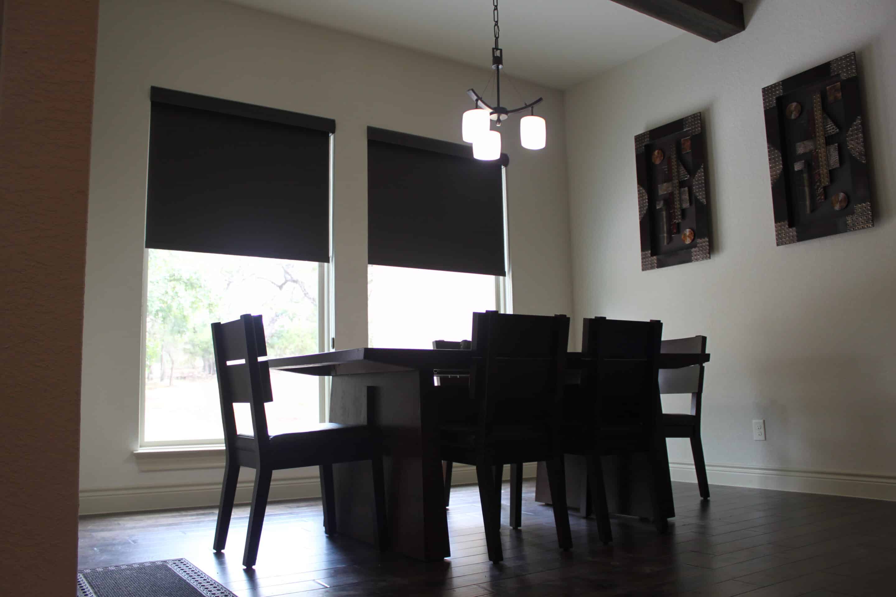• Room darkening shades reduce most outside light but may allow minimal brightness around the edges. They’re ideal for bedrooms, guest rooms, and everyday living spaces.